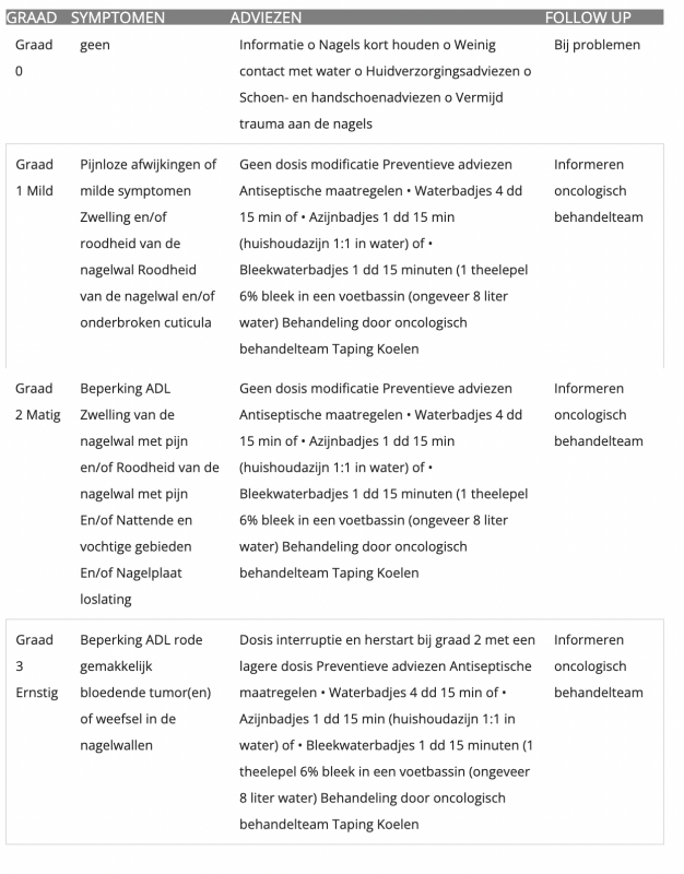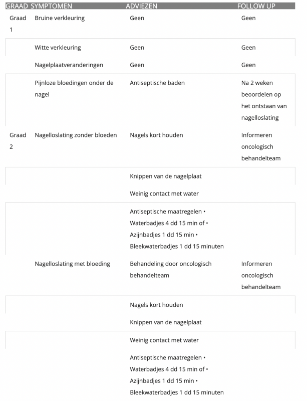 Nagelafwijkingen bij medicijnen tegen kanker: preventieve screening van de handen en de voeten