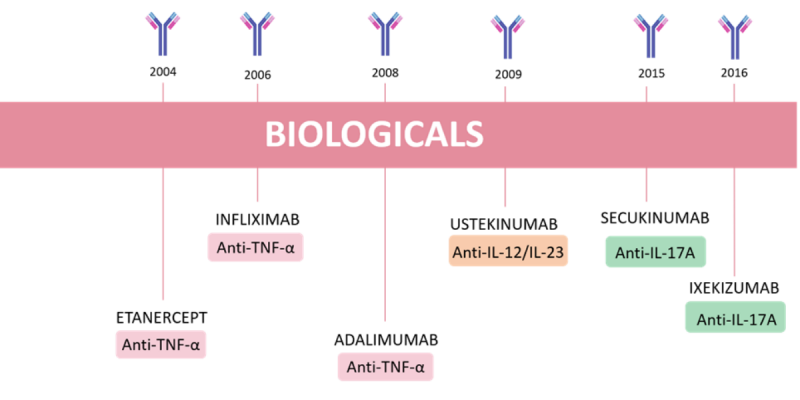 De volgende biologicals zijn in Nederland geregistreerd voor de behandeling van matige en ernstige vormen van psoriasis: